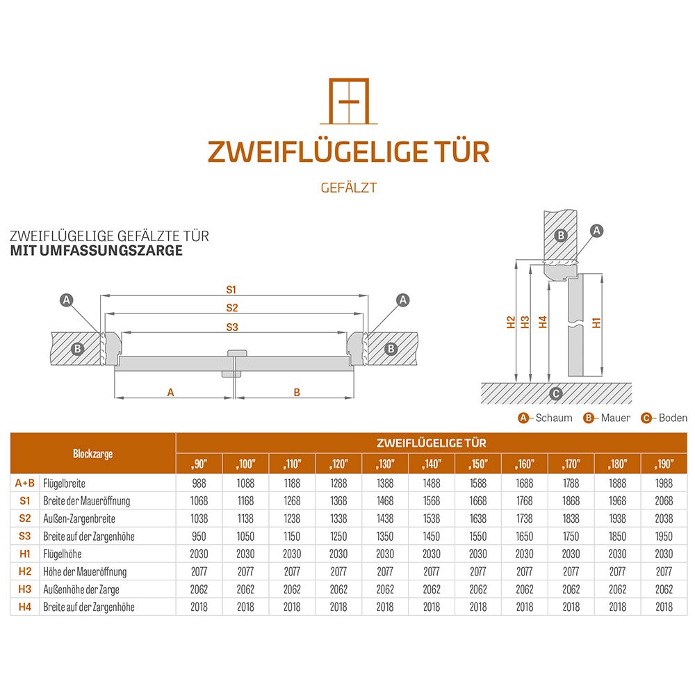 MASSE GEHFLÜGEL MIT DEM TÜRKLINKE (BREITE / HÖHE)