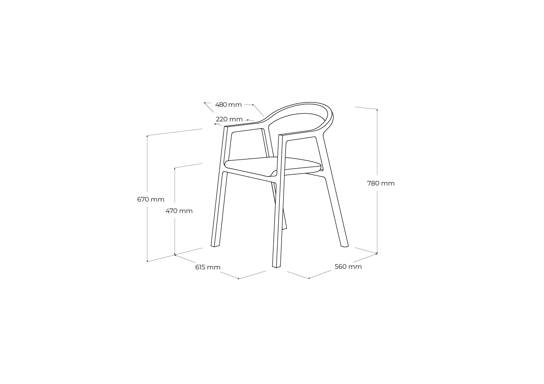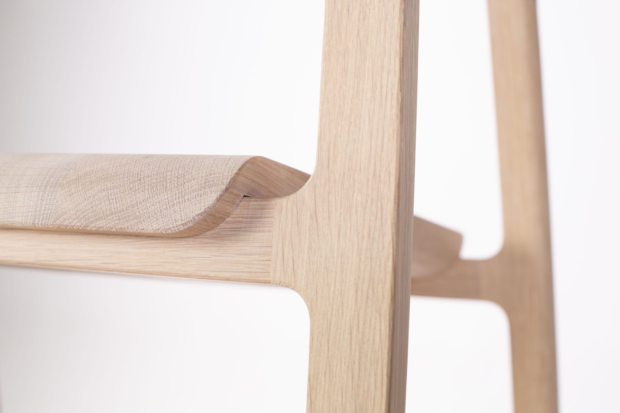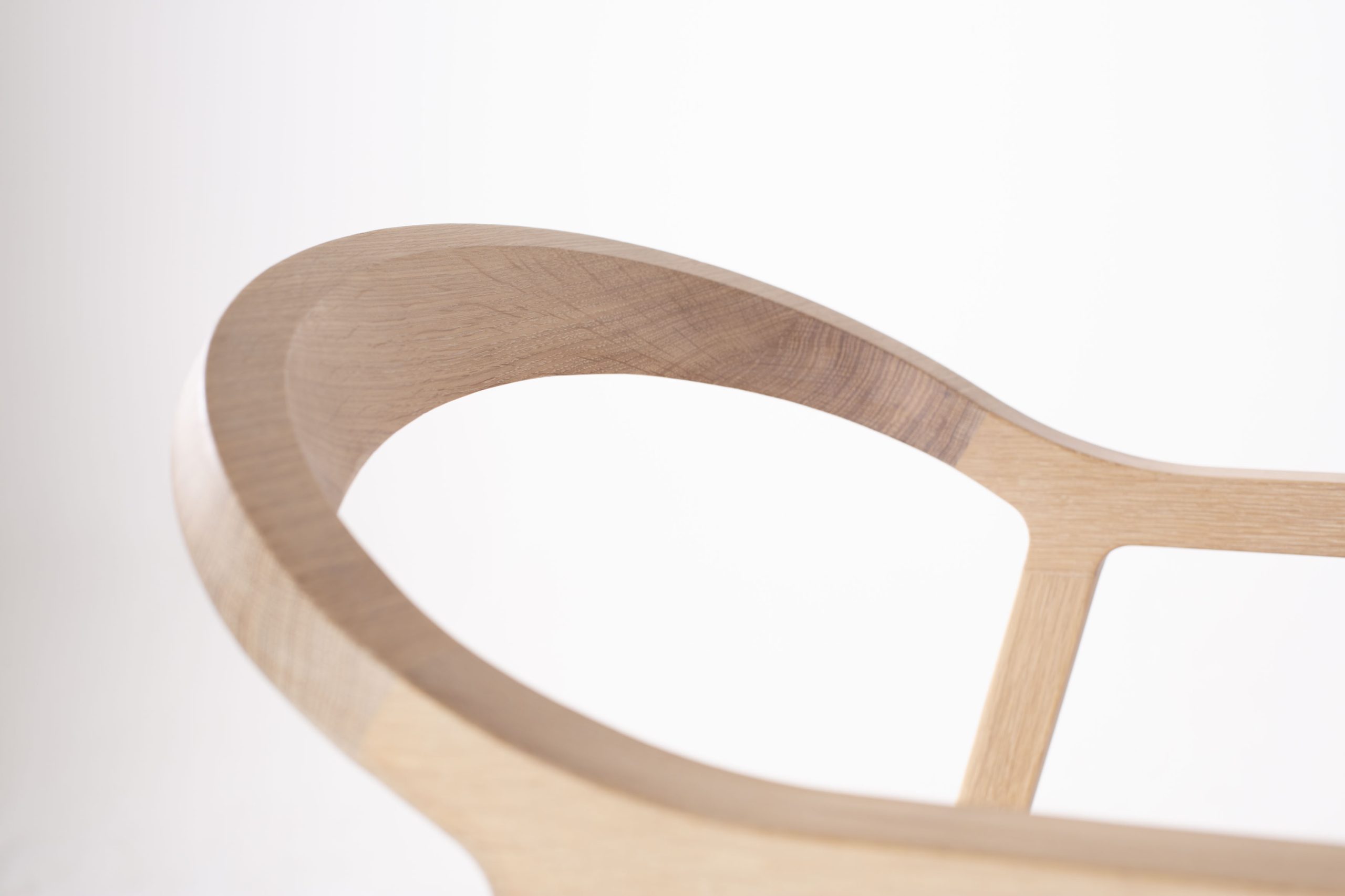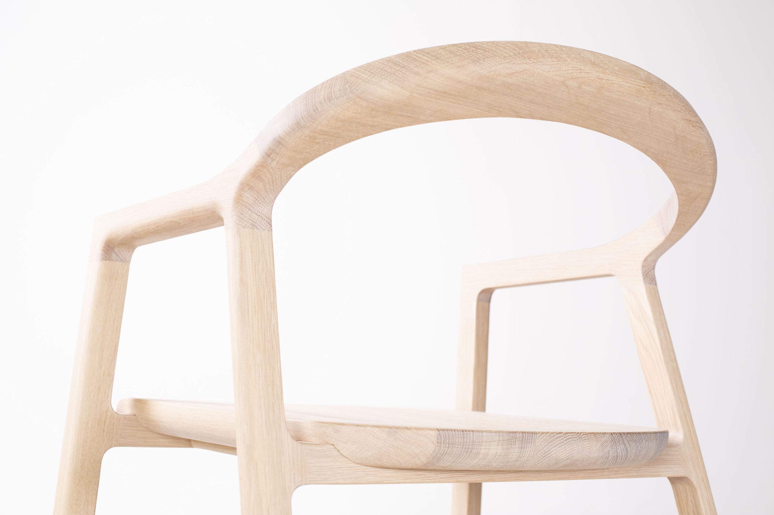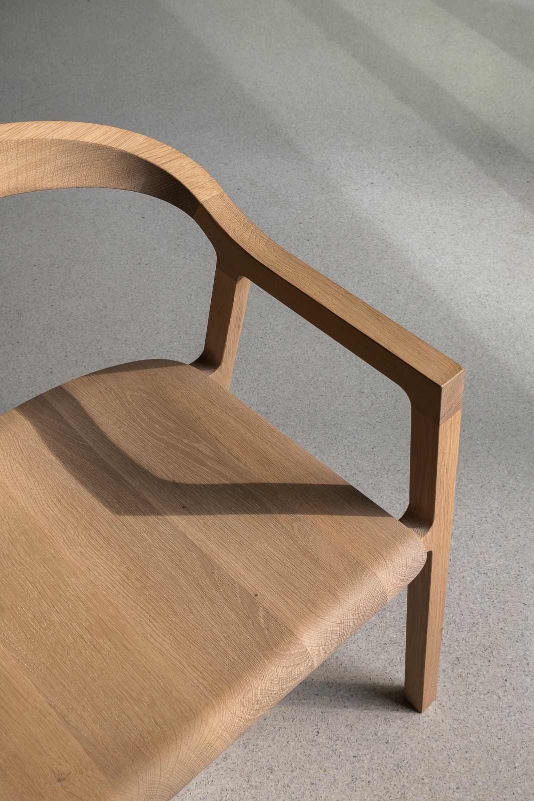 stuhl „TUBA“ mit Armlehnen aus massiver Eiche.