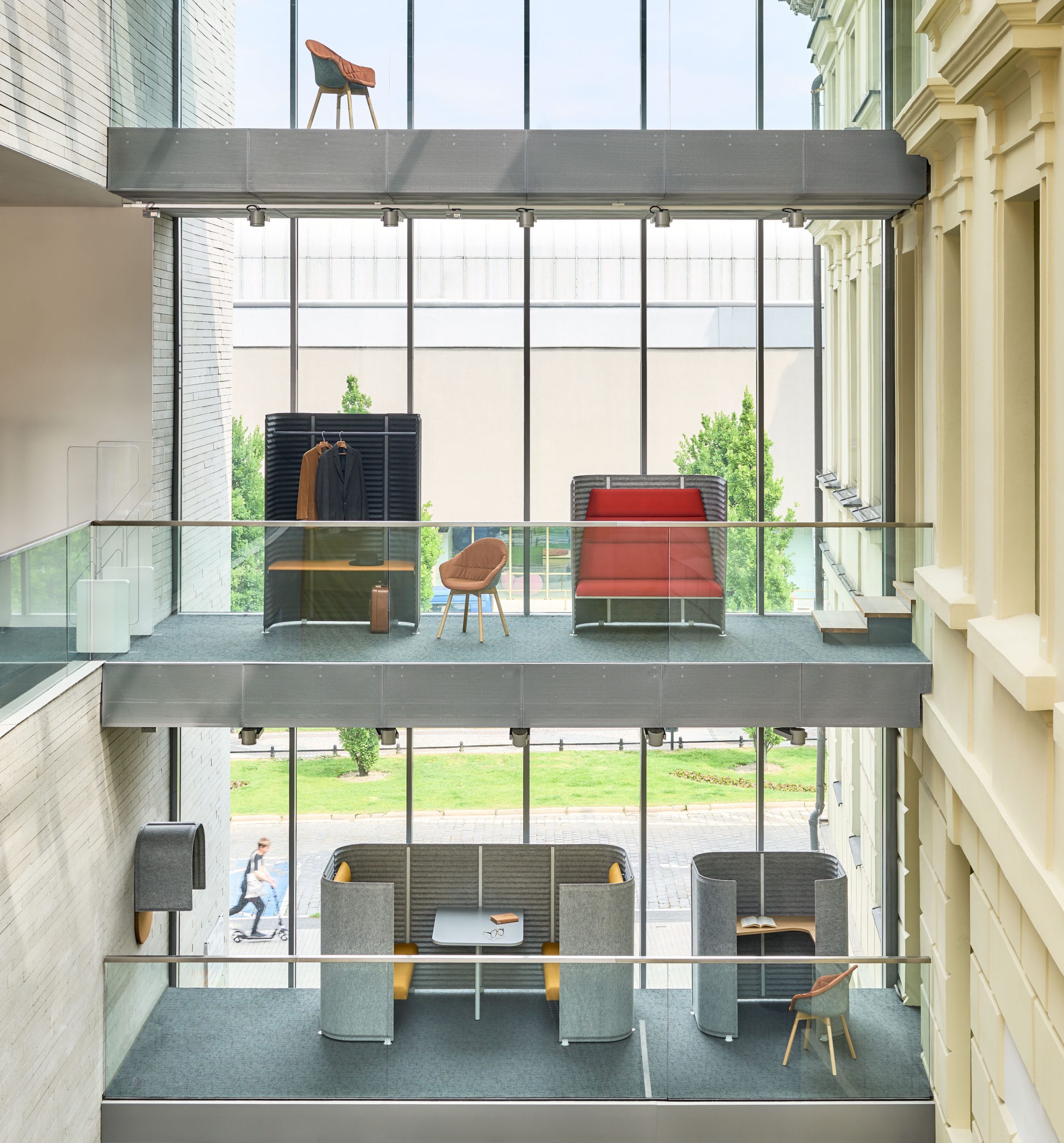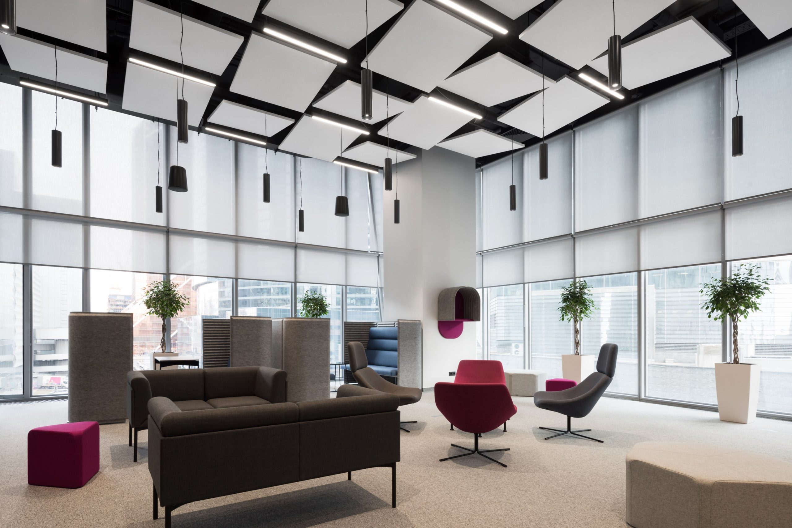 Das Designsystem ermöglicht unbegrenzte Möglichkeiten der räumlichen und akustischen Gestaltung von Büros für Einzel- und Teamarbeit, komfortable Besprechungen und Konzentrationszonen.