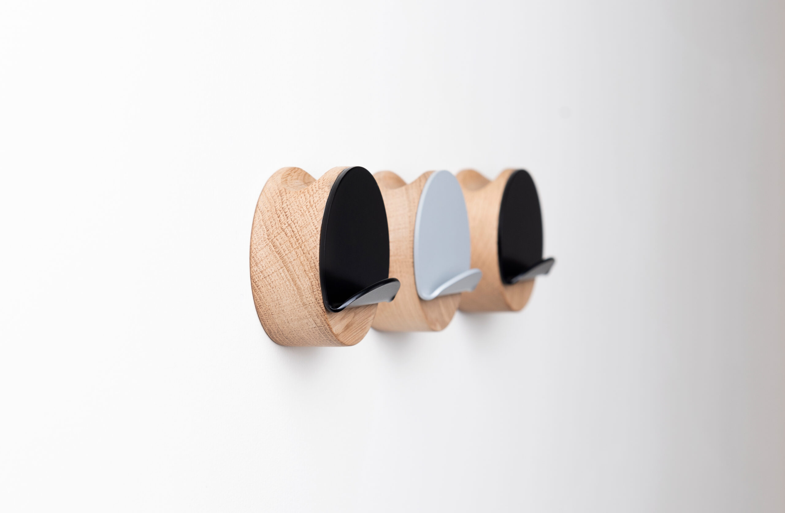 Der von Ezio Pescatori entworfene Wandhalter SAD besticht durch seine schlichte Form. SAD besteht aus zwei Teilen – einer Scheibe aus Eichenholz und einem Metallteil, das wie eine Ecke eines Papierblattes oder ein abziehbarer Aufkleber gebogen ist. Die einzelnen Teile können frei miteinander kombiniert werden, wodurch eine Vielzahl von farblichen und geometrischen Arrangements entsteht. Der Designer gab ihm den skurrilen Namen SAD, obwohl der Bügel ein fröhliches Element der Inneneinrichtung werden kann.